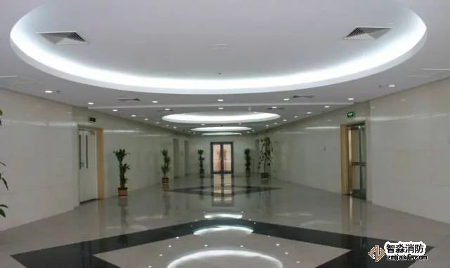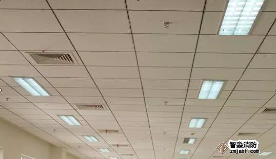 吊頂板上煙感、噴頭、風(fēng)口及燈具安裝均勻合理的布局。