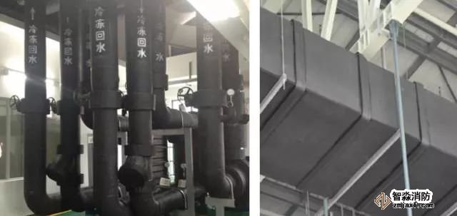 風(fēng)管穿越防火墻應(yīng)設(shè)有鋼板厚度1.6mm及以上的套管。套管內(nèi)部應(yīng)用玻璃棉等不燃材料封堵,外面用防火泥抹面。