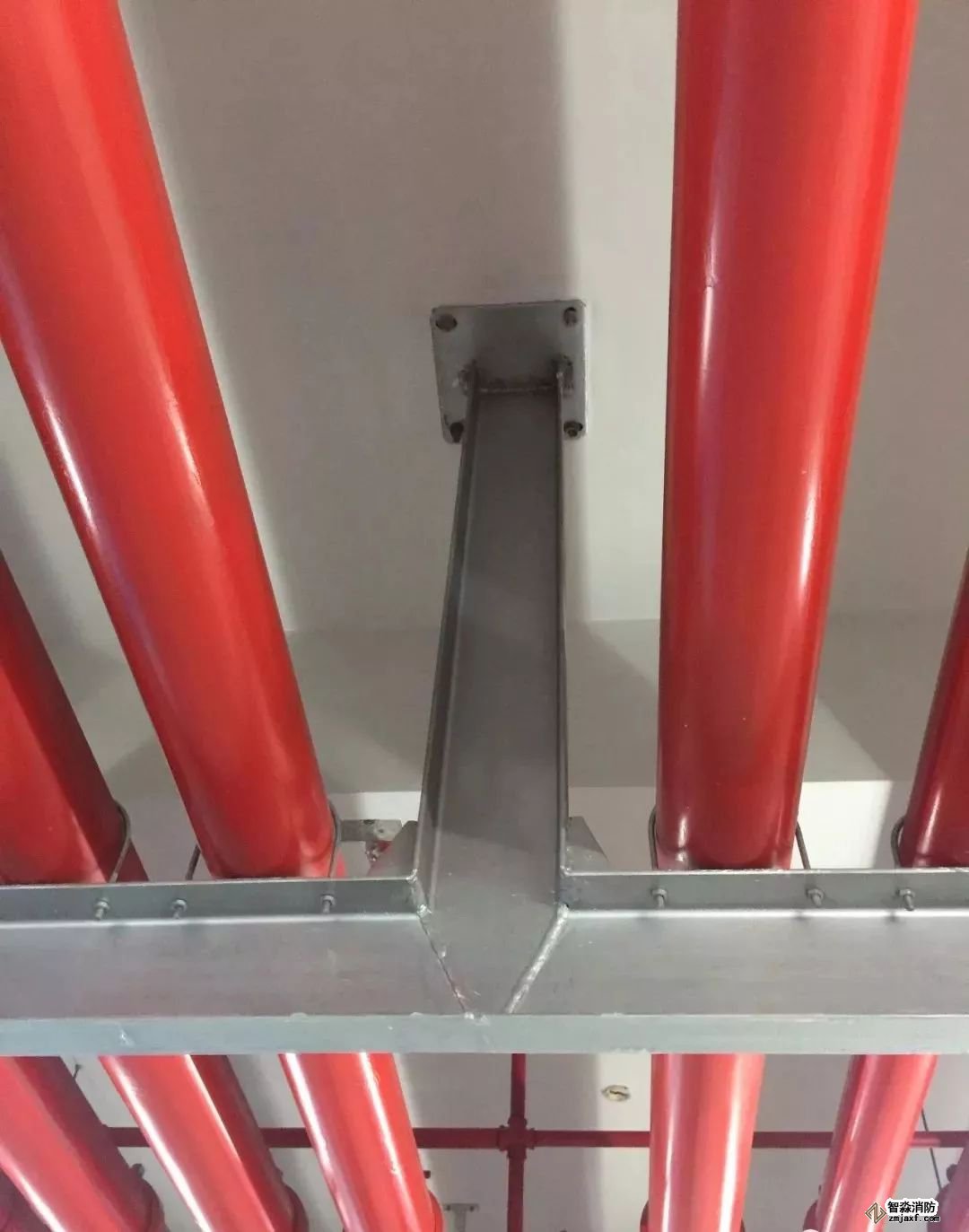 噴淋支管橫平豎直,標(biāo)識(shí)清楚、支架布置間距合理。