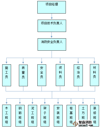1、嚴格執(zhí)行防火管理制度,建立以工程項目經理為組長的消防小組,落實完善本工程的各項防火規(guī)章制度,同時建立義務消防組織。