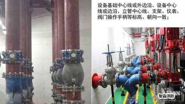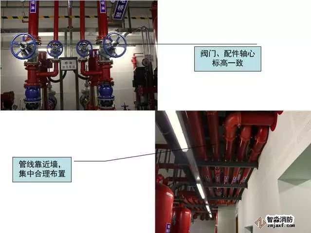 質(zhì)量控制要點:成排成線,部件標高、朝向一致,維護方便,各專業(yè)必須依照綜合管線布置圖施工(距離管線彎頭500mm范圍內(nèi)應設置支吊架)。