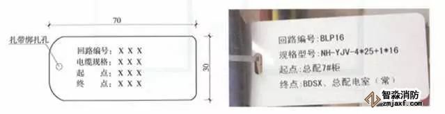 在電纜始端、末端、轉彎處、分支處應設置標識,電氣豎井橋架內(nèi)每層每根電纜均應標識,標識牌應采用定型加工的電纜標牌用尼龍扎帶綁扎在電纜上。