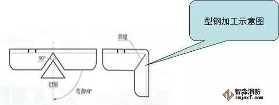 根據(jù)管道的數(shù)量、管徑、走向、空間布局選用合適的支架形式;下料應采用切割機,用臺鉆鉆螺栓孔(嚴禁采用氣割吹孔),孔徑為螺栓直徑+2mm;型鋼切割面應打磨光滑,端部倒圓弧角,倒角半徑為型鋼端面邊長的1/3~1/2,支架拐角處應采用45°拼接,拼接縫采用焊接,焊縫應飽滿、打磨平滑;支架應先刷防銹漆兩道,再刷面漆一道,埋地支架埋入部分及地面以上50mm(±1mm)內(nèi)刷防銹漆兩道后再瀝青防腐面漆兩道。