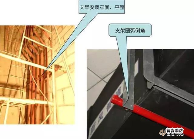 質(zhì)量控制要點:支架安裝牢固,成排支架應排列成線、標高一致。
