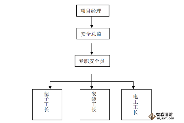 建立以項(xiàng)目經(jīng)理為首的安全保證體系,將安全工作落實(shí)到個(gè)人,形成人人講安全,人人管安全,上班前講安全,上班要檢查安全的良好風(fēng)氣。