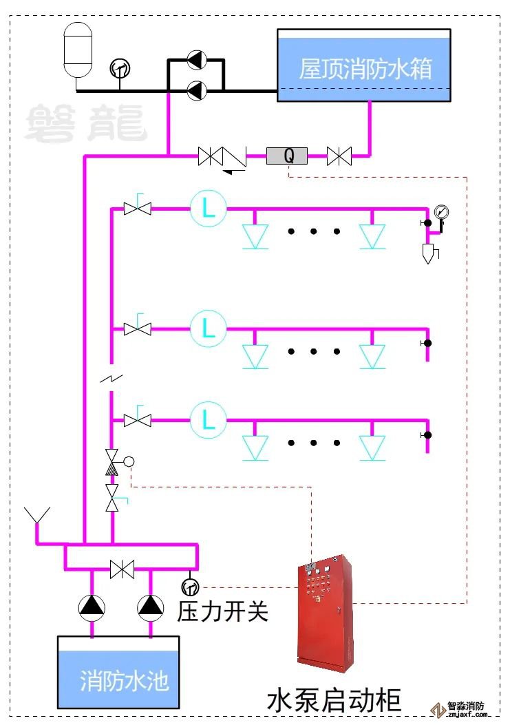 對(duì)于這類系統(tǒng),消防水泵出水干管上應(yīng)設(shè)置壓力開關(guān),高位消防水箱出水管上應(yīng)設(shè)置流量開關(guān),存在問(wèn)題及解決措施: