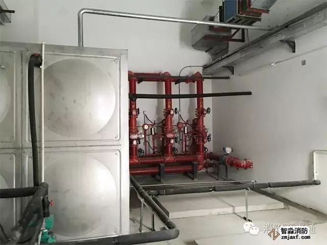 說明:因?yàn)樽詣?dòng)噴水滅火系統(tǒng)滅火不成功的因素中,供水中斷是主要因素之一,所以這一條對(duì)三種水源情況既提出了要求,又要實(shí)際檢查是否符合設(shè)計(jì)和施工驗(yàn)收規(guī)范中關(guān)于水源的規(guī)定,特別是利用天然水源作為系統(tǒng)水源時(shí),除水量應(yīng)符合設(shè)計(jì)要求外,水質(zhì)必須無雜質(zhì)、無腐蝕性,以防堵塞管道、噴頭,腐蝕管道,即水質(zhì)應(yīng)符合工業(yè)用水的要求。對(duì)于個(gè)別地方,用露天水池或河水作臨時(shí)水源時(shí),為防止雜質(zhì)進(jìn)入消防水泵和管網(wǎng),影響噴頭布水,需在水源進(jìn)入消防水泵前的吸水口處,設(shè)有自動(dòng)除渣功能的固液分離裝置,而不能用格柵除渣,因格柵被雜質(zhì)堵塞后,易造成水源中斷。如成都某賓館的消防水池是露天水池,池中有水草等雜質(zhì),消防水泵啟動(dòng)后,因水泵吸水量大,雜質(zhì)很快將格柵堵死,消防水泵因進(jìn)水口無水,達(dá)不到滅火目的。