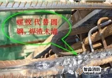 (1)對施工規(guī)范、設(shè)計要求沒有掌握,對使用材料規(guī)格、型號不重視,使用土建工程的鋼筋廢料,認為用螺紋鋼等其他材料焊接即可。