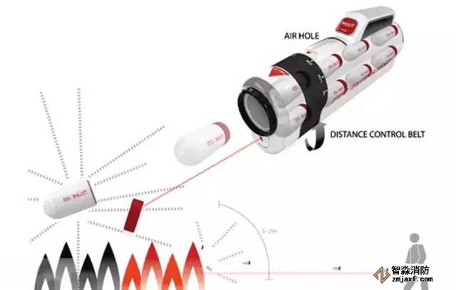這款滅火器適用于超大型的火災(zāi),將滅火物質(zhì)儲(chǔ)存在了類似于膠囊的小容器中,它借鑒了玩具槍的設(shè)計(jì),而每個(gè)滅火的小容器都是“子彈”。一旦火災(zāi)發(fā)生時(shí),人們只需抓起“滅火槍”對(duì)準(zhǔn)火場(chǎng)“開火”即可。這樣不僅有利于滅火物質(zhì)的迅速散開,而且可以在更遠(yuǎn)的距離進(jìn)行滅火,因此安全系數(shù)更高。