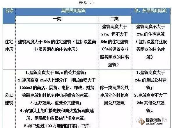 5.1.1民用建筑根據(jù)其建筑高度和層數(shù)可分為單、多民用建筑和高層民用建筑。高層民用建筑根據(jù)其建筑高度、使用功能和樓層的建筑面積可分為一類和二類。民用建筑的分類應(yīng)符合表5.1.1的規(guī)定。