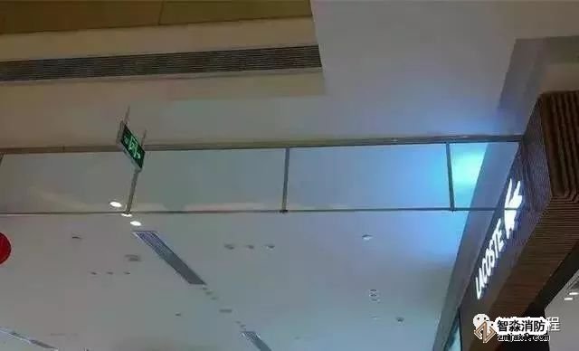 5)擋煙垂壁。擋煙垂壁是用于分隔防煙分區(qū)的裝置或設(shè)施,可分為固定式或活動式。固定式可采用隔墻、樓板下不小于500mm的梁或吊頂下凸出不小于500mm 的不燃燒體;活動式擋煙垂壁本體采用不燃燒體制作,平時隱藏于吊頂內(nèi)或卷縮在裝置內(nèi),當(dāng)其所在部位溫度升高,或消防控制中心發(fā)出火警信號或直接接收煙感信號后,置于吊頂上方的擋煙垂壁迅速垂落至設(shè)定高度,限制煙氣流動以形成“儲煙倉”,便于排煙系統(tǒng)將高溫?zé)煔庋杆倥懦鍪彝狻?/p>