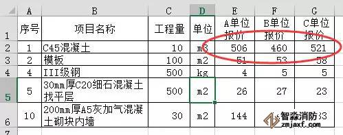 對(duì)于業(yè)主或造價(jià)咨詢?nèi)藛T在對(duì)投標(biāo)文件進(jìn)行回標(biāo)分析的時(shí)候一定是時(shí)間緊、任務(wù)重,如何才能快速地將各家單位投標(biāo)單價(jià)中的最高價(jià)和最低價(jià)以不同顏色突出顯示,以方便下一步去判斷各投標(biāo)單位的投標(biāo)報(bào)價(jià)高低。條件格式就可以幫我們這個(gè)忙。下面請(qǐng)看案例: