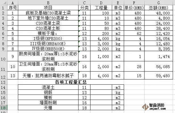 大家在統(tǒng)計(jì)工程量的各項(xiàng)技術(shù)指標(biāo)時(shí),往往先需要匯總各項(xiàng)工程量(如混凝土的總和),該項(xiàng)工作特別麻煩,還容易出錯(cuò),有什么方法可以一步到位呢?常用函數(shù)Sumif可以幫大家解決這個(gè)問題。案例如下:
