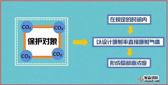 局部應(yīng)用滅火系統(tǒng)指在規(guī)定的時(shí)間內(nèi)向保護(hù)對(duì)象以設(shè)計(jì)噴射率直接噴射氣體,在保護(hù)對(duì)象周圍形成局部高濃度,并持續(xù)一定時(shí)間的滅火系統(tǒng)。