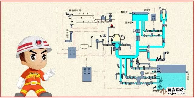預(yù)作用系統(tǒng)與濕式系統(tǒng)、干式系統(tǒng)的不同之處,在于系統(tǒng)采用雨淋閥,并配套設(shè)置火災(zāi)自動(dòng)報(bào)警系統(tǒng)。