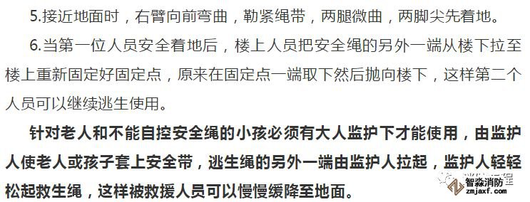2.把安全帶纏繞在臀部、腰間或者腋下,調(diào)緊安全上松緊扣。并將救生繩順著窗口拋向樓下。