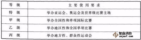 體育場(chǎng)(館)有其特定的功能需求,其建筑防火要求及消防設(shè)施的設(shè)置,應(yīng)滿足《建筑設(shè)計(jì)防火規(guī)范》、《體育建筑設(shè)計(jì)規(guī)范》以及相應(yīng)的系統(tǒng)類技術(shù)規(guī)范標(biāo)準(zhǔn)的要求。