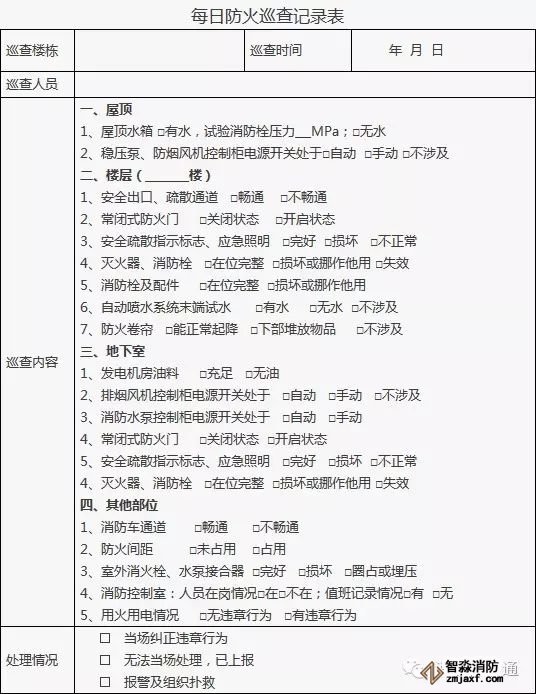 3、對發(fā)現(xiàn)的問題應(yīng)及時處理,當(dāng)場不能處置的要填報《建筑消防設(shè)施故障處理記錄》。