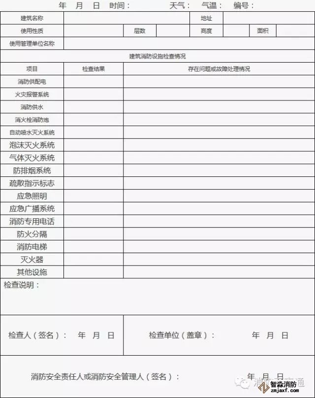 2、檢查發(fā)現(xiàn)建筑消防設(shè)施存在問題和故障的,實施檢查的人員必須向單位消防安全管理人報告,并填表。