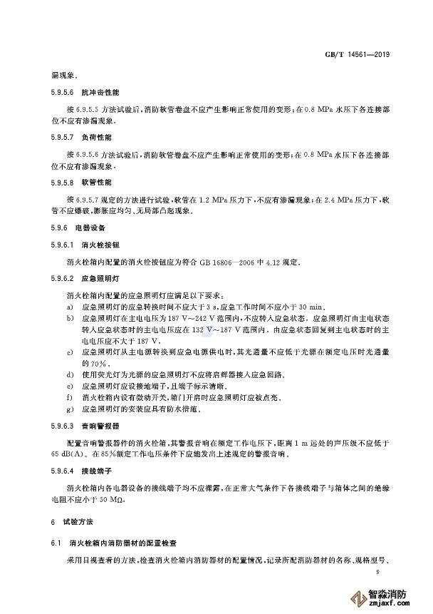 5. 修改了箱內(nèi)配置消防器材的試驗方法(見第6章,2003年版的第6章)。