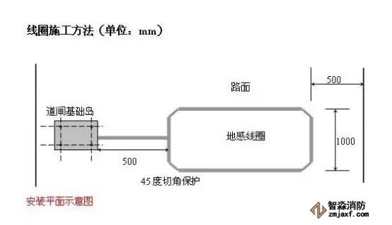 線圈埋設(shè)首先要用切路機(jī)在路面上切出槽來。在四個角上進(jìn)行45度倒角,防止尖角破壞線圈電纜。切槽寬度一般為4到8毫米,深度30到50毫米。同時還要為線圈引線切一條通到路邊的槽。但要注意:切槽內(nèi)必須清潔無水或其它液體滲入。繞線圈時必須將線圈拉直,但不要繃得太緊并緊貼槽底。將線圈繞好后,將雙絞好的輸出引線通過引出線槽引出。