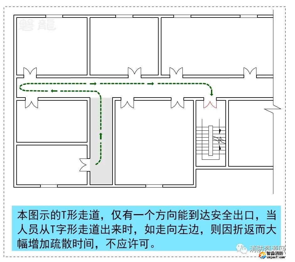 四、關(guān)于T形走道的疏散方案及疏散距離計(jì)算,參專題: T形走道-宜與忌!疏散距離計(jì)算規(guī)則!