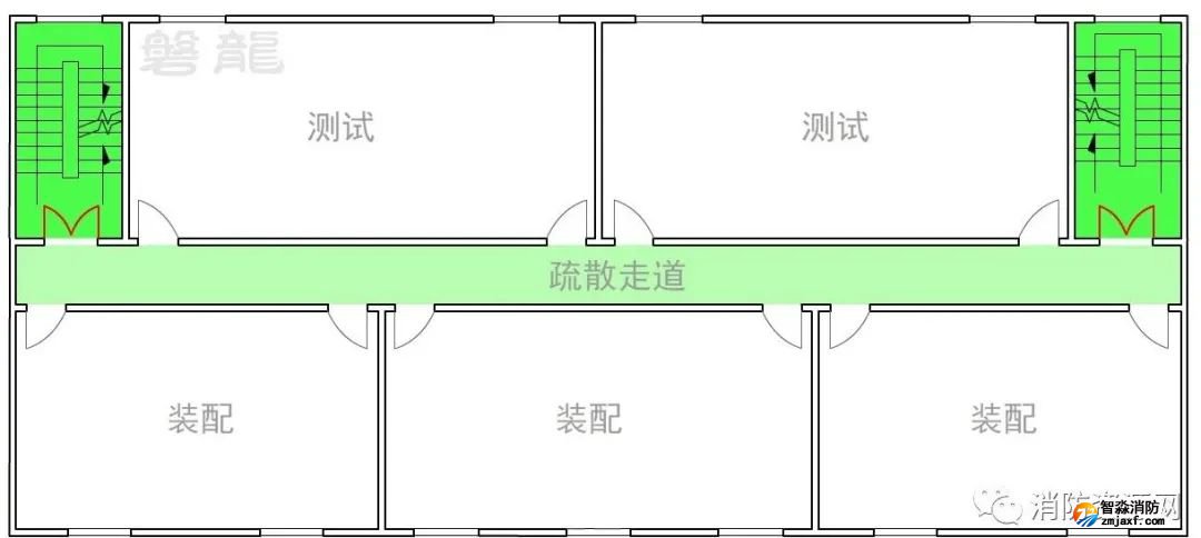1、在圖示6的廠房建筑中,同樣應(yīng)采用“房間”→“疏散走道”→“安全出口”的基本設(shè)置原則,確保風(fēng)險(xiǎn)逐級(jí)降低,廠房倉(cāng)庫(kù)疏散走道兩側(cè)的隔墻,其燃燒性能和耐火等級(jí),應(yīng)符合規(guī)范要求。