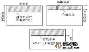 擋煙垂壁是為了阻止煙氣沿水平方向流動(dòng)而垂直向下吊裝在頂棚上的擋煙構(gòu)件,其有效高度不小于500mm。擋煙垂壁可采用固定式或活動(dòng)式,當(dāng)建筑物凈空較高時(shí)可采用固定式的,將擋煙垂壁長期固定在頂棚上;當(dāng)建筑物凈空較低時(shí),宜采用活動(dòng)式。擋煙垂壁應(yīng)用不燃燒材料制作,如鋼板、防火玻璃、無機(jī)纖維織物、不燃無機(jī)復(fù)合板等?;顒?dòng)式的擋煙垂壁應(yīng)由感煙控測器控制,或與排煙口聯(lián)動(dòng),或受消防控制中心控制,但同時(shí)應(yīng)能就地手動(dòng)控制?;顒?dòng)擋煙垂壁落下時(shí),其下端距地面的高度應(yīng)大于1.80m。