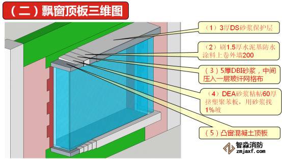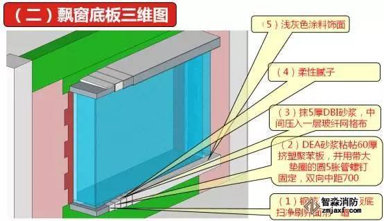 上圖是飄窗底板的裝修做法,從圖中我們可以看出,包括了5層裝修量。