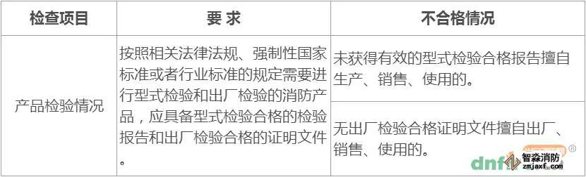 消防產(chǎn)品質(zhì)量應(yīng)當(dāng)按照相關(guān)法律法規(guī)、強(qiáng)制性國(guó)家標(biāo)準(zhǔn)或者行業(yè)標(biāo)準(zhǔn)的規(guī)定,經(jīng)型式檢驗(yàn)和出廠檢驗(yàn)合格。產(chǎn)品檢驗(yàn)情況檢查項(xiàng)目、要求及不合格情況見(jiàn)下表。
