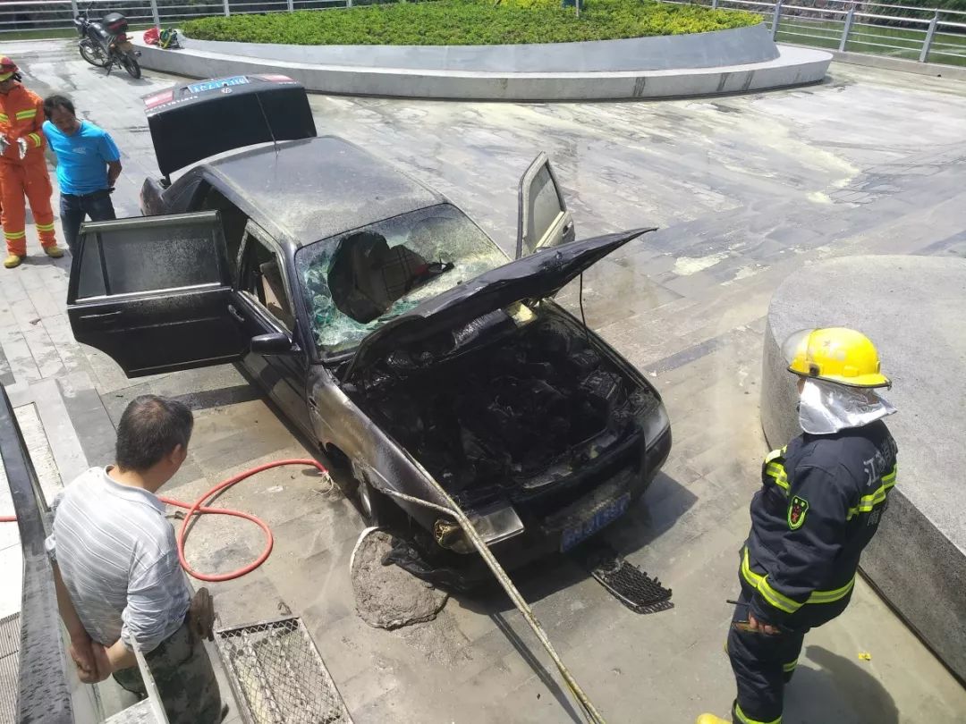 2019年5月14日11時(shí)02分,南通市海門119指揮中心接到報(bào)警稱:位于海門市中南世紀(jì)城格蕾絲酒店前面轎車自燃。北海路中隊(duì)2輛消防車、12名消防員立即趕赴現(xiàn)場處置。