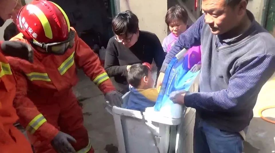 原來是醫(yī)院里面一個按摩床,小孩頭卡在床洞內(nèi)....