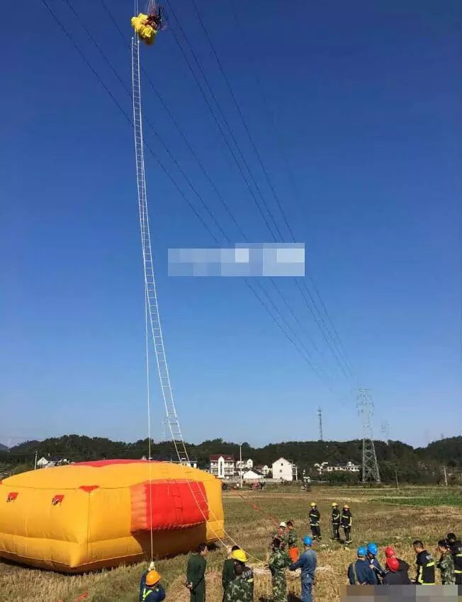 結(jié)果掛在高壓線上面。