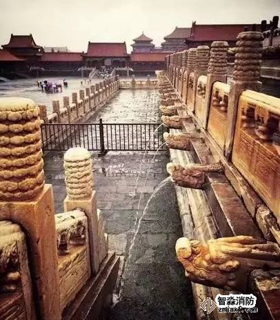 有人說是因?yàn)樗貏莞?。?dāng)然,不可否認(rèn),地勢高在暴雨中確實(shí)是有優(yōu)勢的。但是如果缺乏精密的排水系統(tǒng),故宮排水也不會如此有秩序。