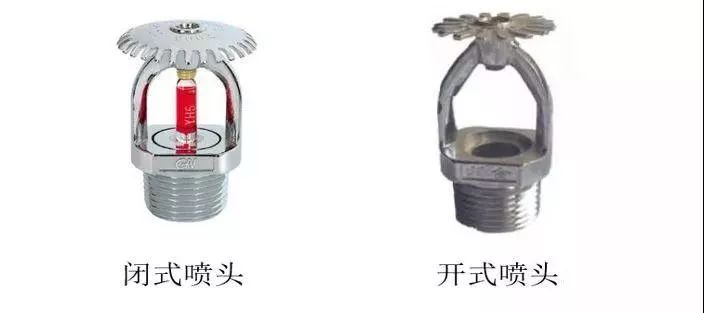 2、 自動(dòng)噴水滅火系統(tǒng)根據(jù)噴頭的不同可以分為兩類,使用閉式噴頭(注意噴頭中間的紅色玻璃管)就是閉式系統(tǒng),使用開(kāi)式噴頭的為開(kāi)式系統(tǒng)。其中閉式系統(tǒng)包括濕式系統(tǒng)、干式系統(tǒng)和預(yù)作用系統(tǒng);開(kāi)式系統(tǒng)包括雨淋系統(tǒng)、水幕系統(tǒng)。