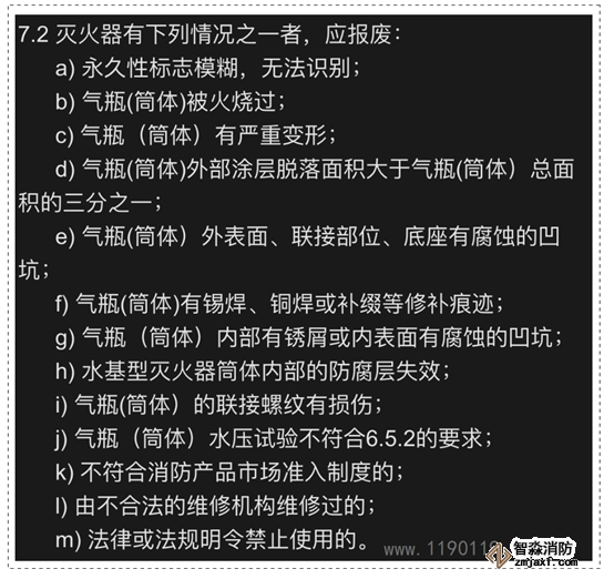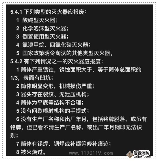 GB50444和GA95均規(guī)定了滅火器需要報(bào)廢的情形,在滅火器的日常和定期巡檢中,若發(fā)現(xiàn)以下情況之一的,應(yīng)予以報(bào)廢: